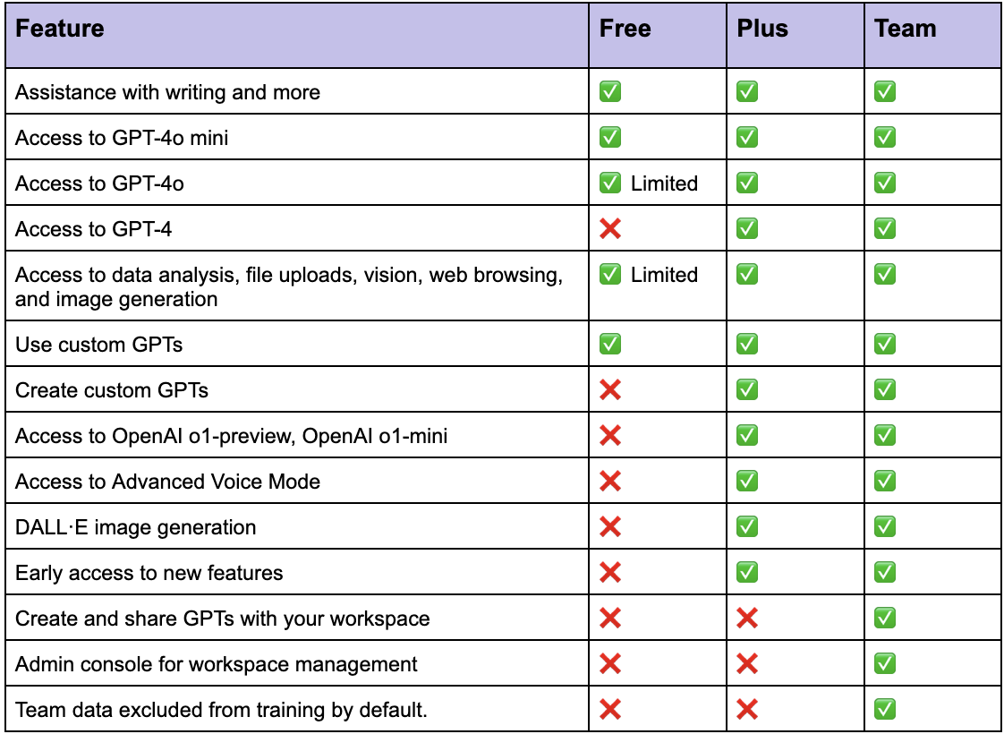 However, the free version has limitations in terms of model access, response speed, and session lengths. ChatGPT Plus and Team are paid subscriptions that offer several advantages over the free version: