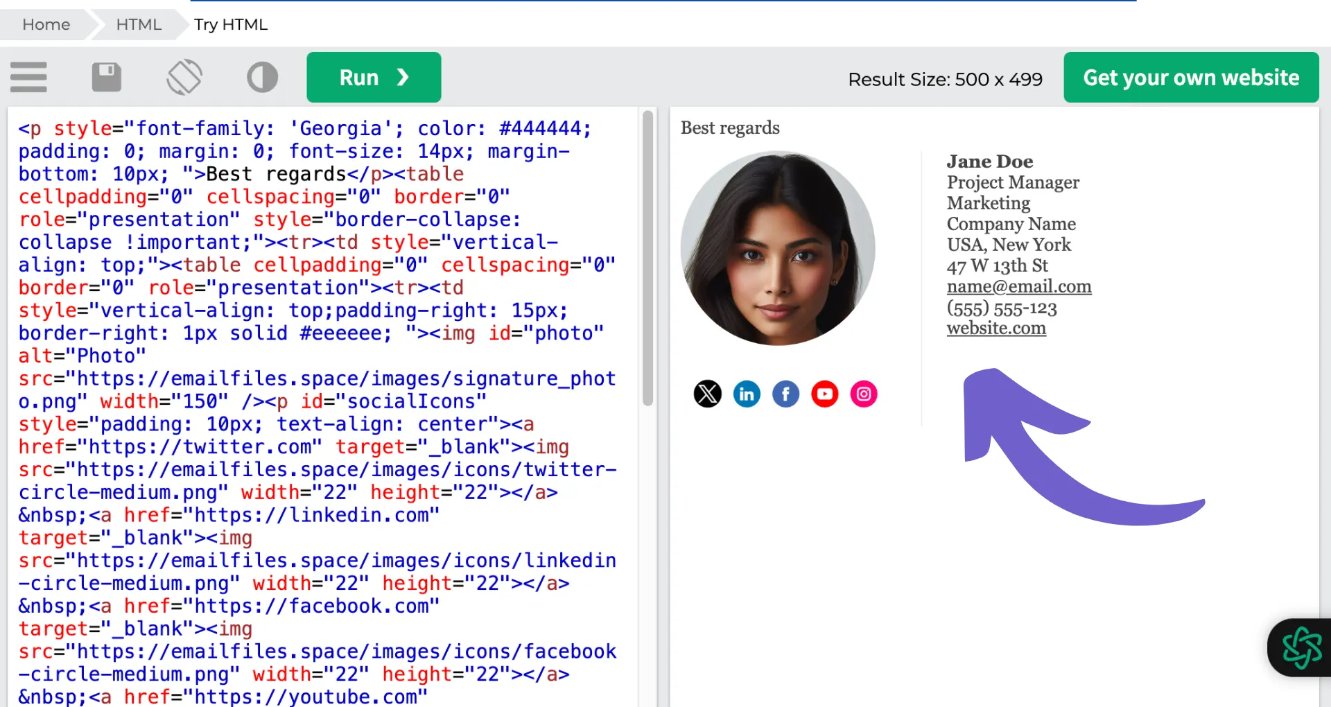 If you have existing content in your signature, it will be automatically converted to HTML code.