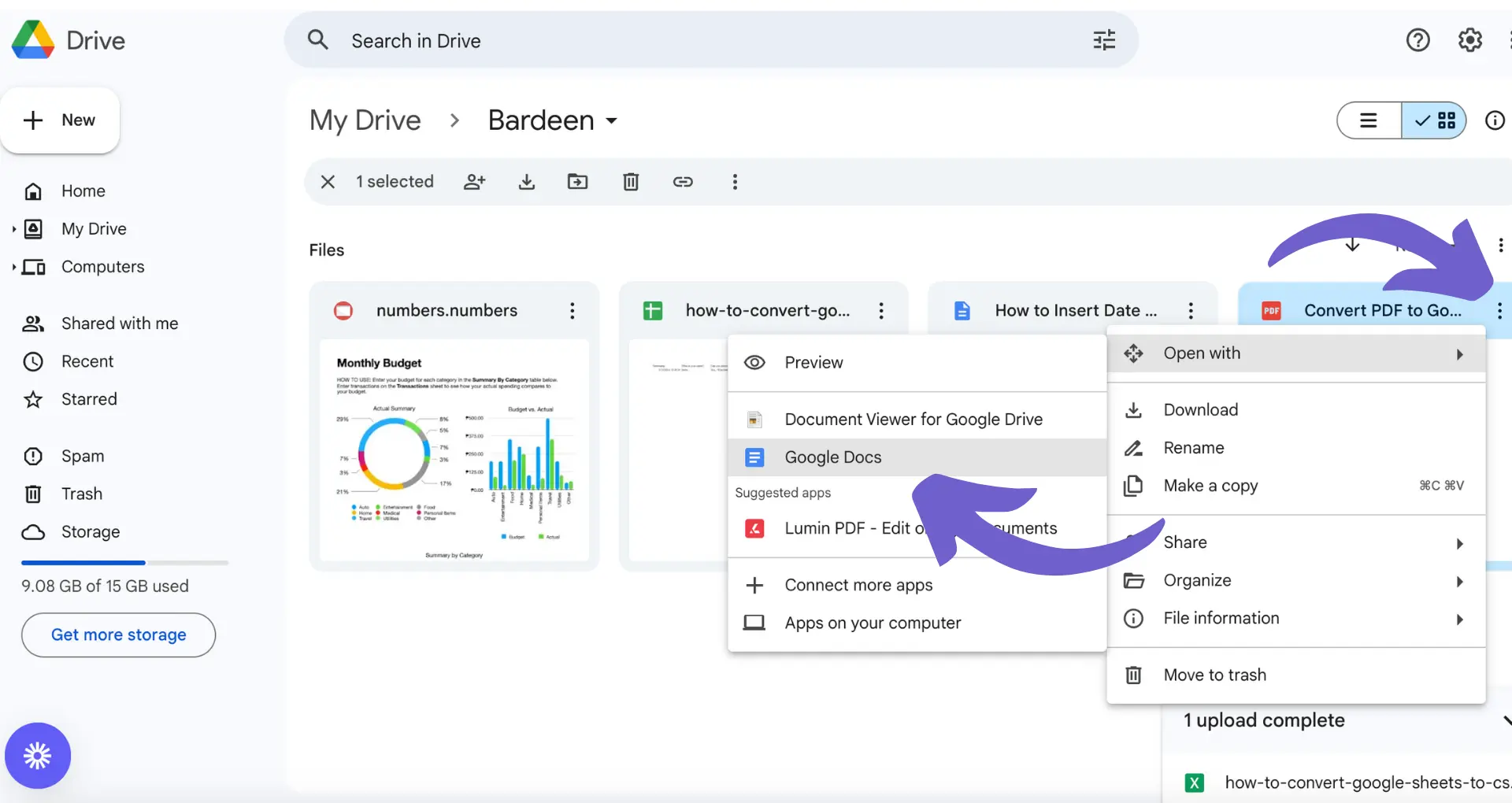 Method 1: Converting PDF to Google Sheets Using Google Drive