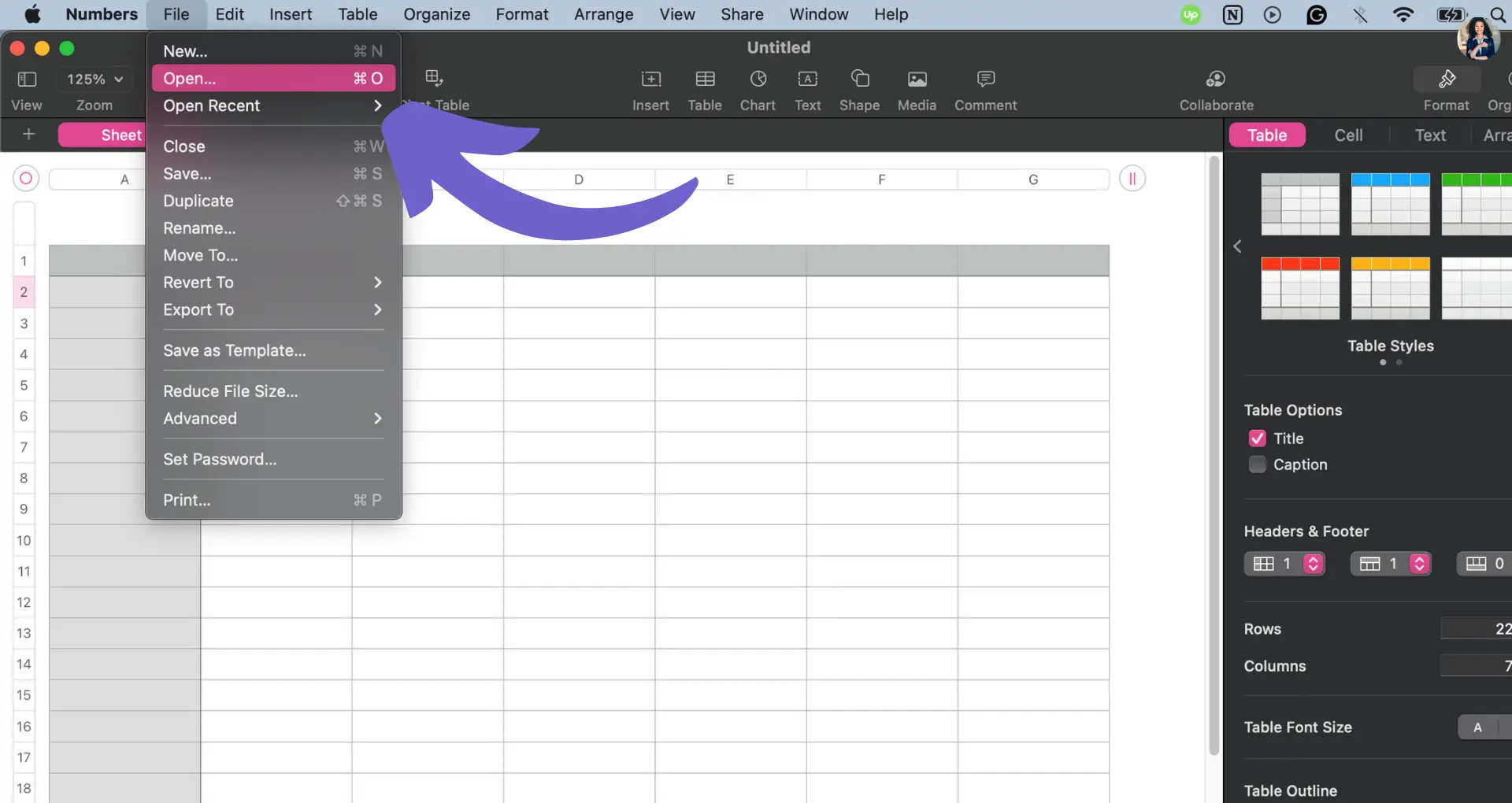 Open Apple Numbers and create a new spreadsheet or open an existing one.