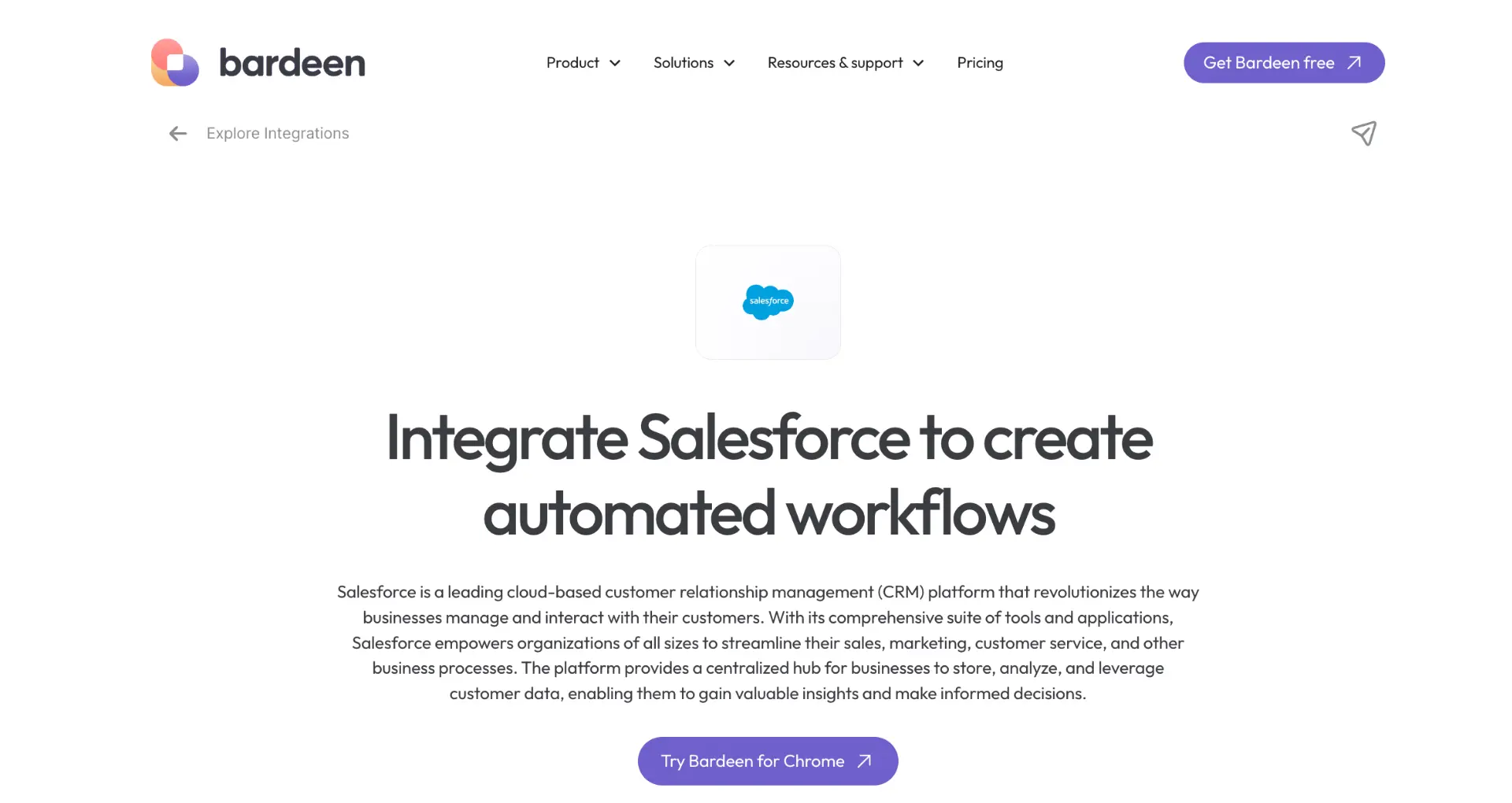 Bardeen integrates broadly with CRMs, communication platforms, lead generation tools, project and task management tools, and customer success tools. These integrations connect workflows and ensure data flows smoothly across systems.