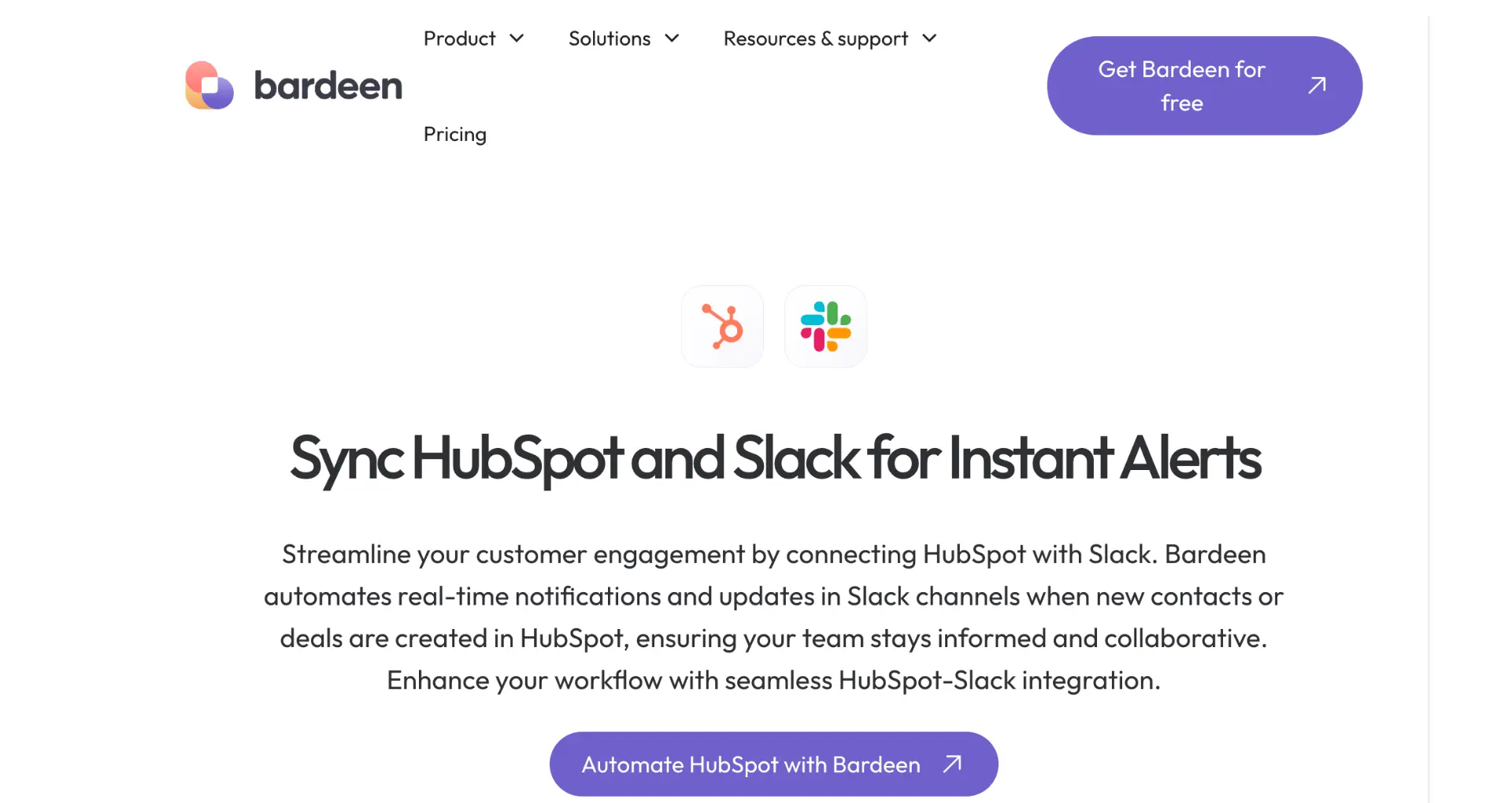 If you use HubSpot, you might love Bardeen's HubSpot integrations. It automates tasks like syncing contacts and sending alerts, saving you time and effort.