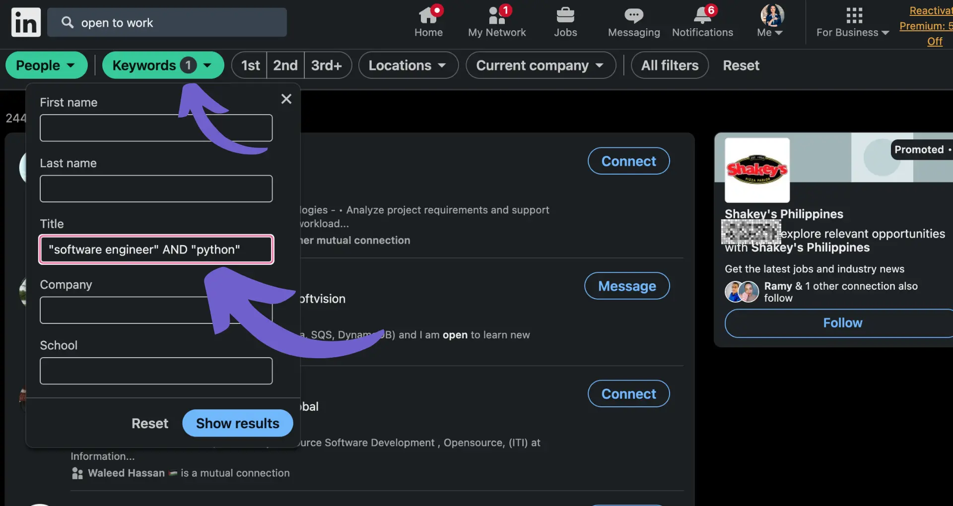 In addition to using LinkedIn's built-in filters, Boolean search techniques can help you uncover even more precise results. Boolean search allows you to combine keywords with operators like AND, OR, and NOT to create targeted search queries. For example: