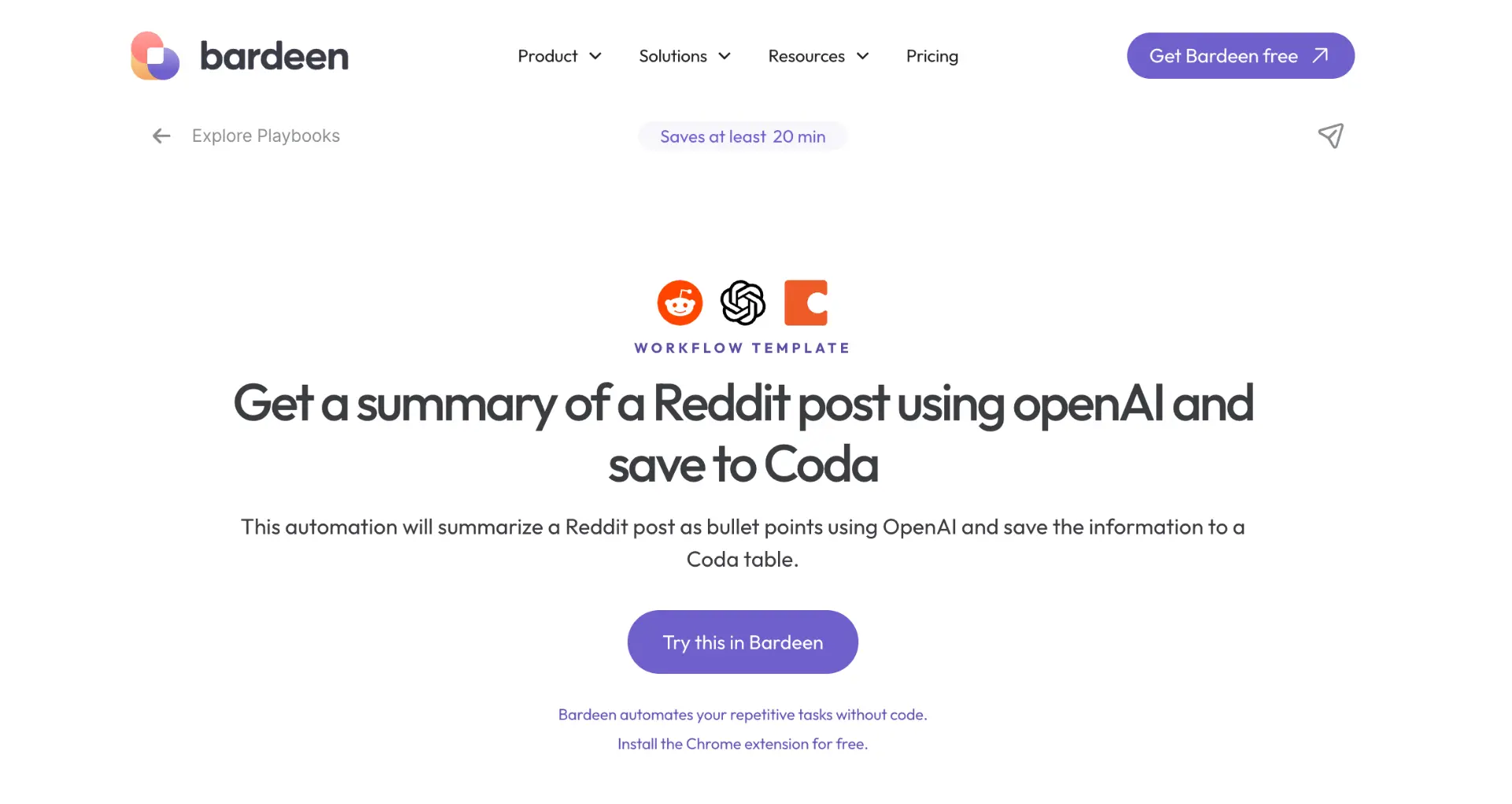 Bardeen enables you to capture and analyze Reddit content while respecting user privacy. Use these playbooks to save posts to your database or generate summaries: