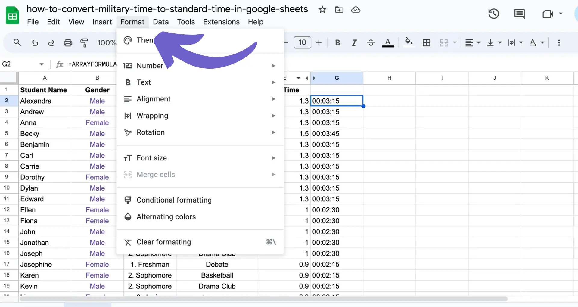 Open your Google Sheet and click on "Add-ons" in the menu bar.