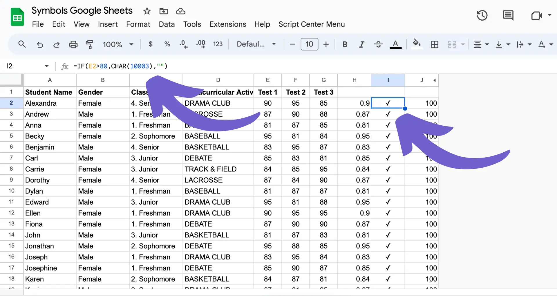 The CHAR function in Google Sheets is a powerful tool for inserting specific symbols into your spreadsheet. It converts a number into a special character according to the current Unicode table. Here's how to use it: