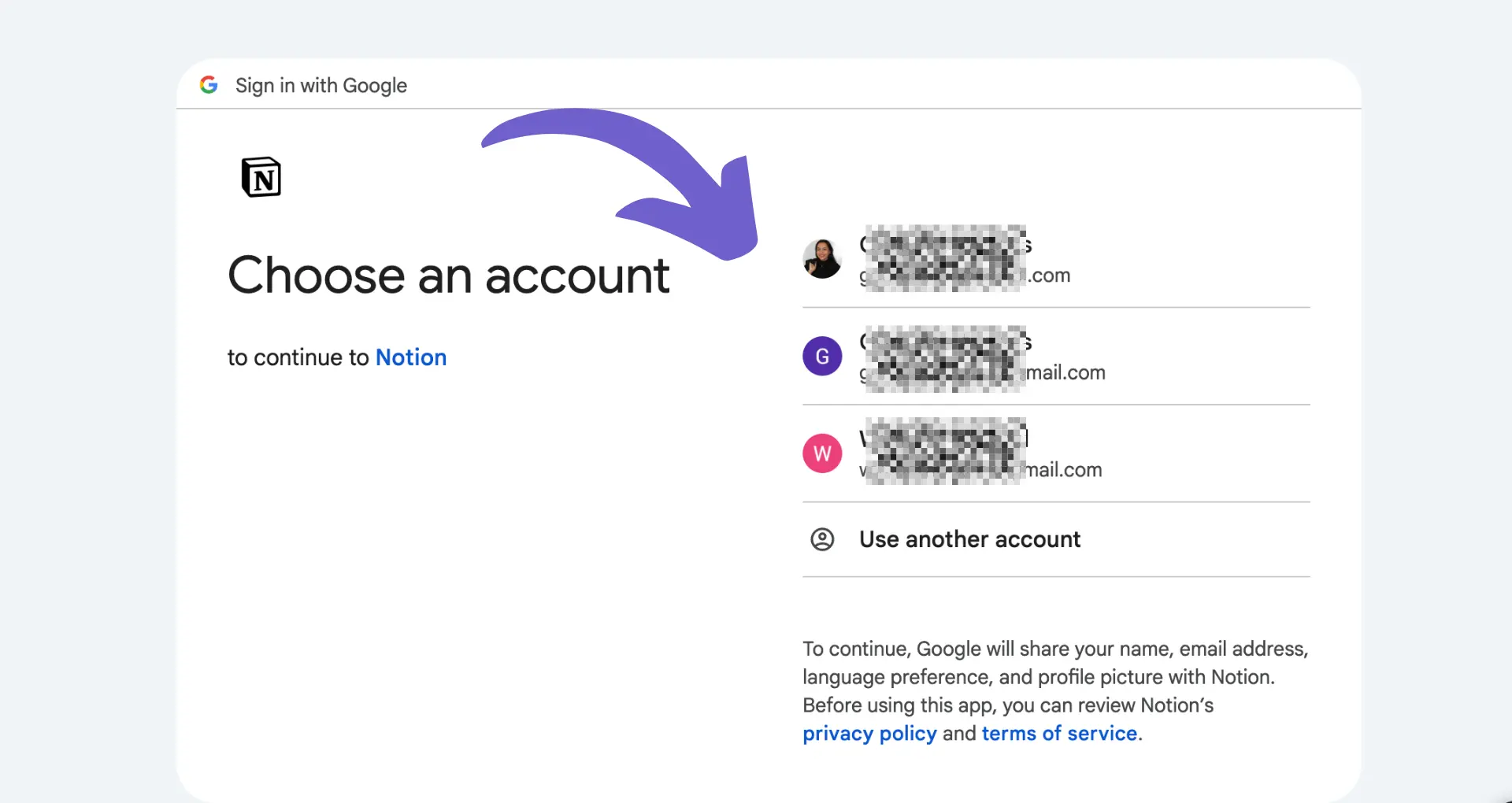 You'll be prompted to log in to your Google account if you haven't already done so. Make sure to use the Google account you want to connect to Notion.