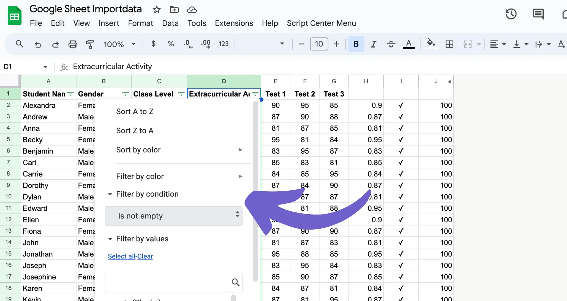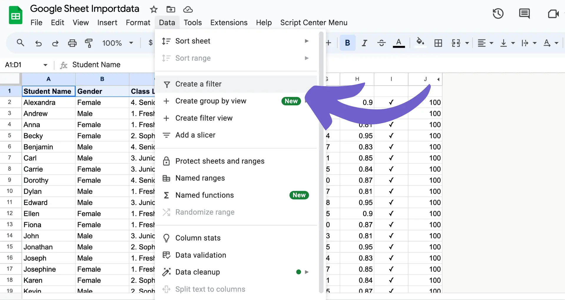 Filters in Google Sheets allow you to hide or highlight specific data sets, making it easier to focus on the information that matters most. Here's how to apply filters:
