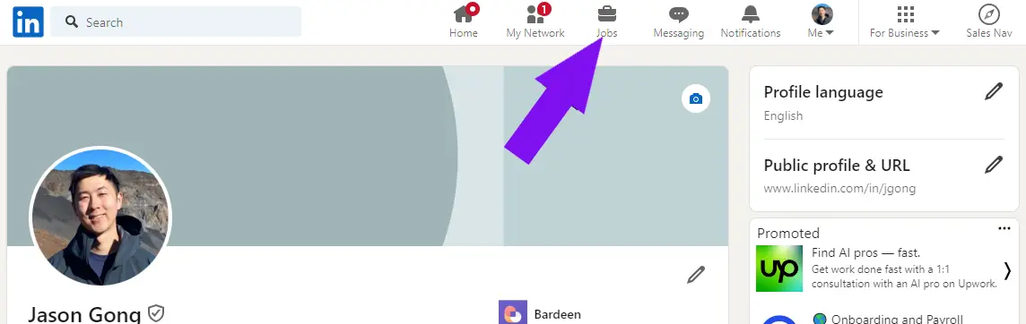 1. Click the Jobs icon at the top of your LinkedIn homepage.