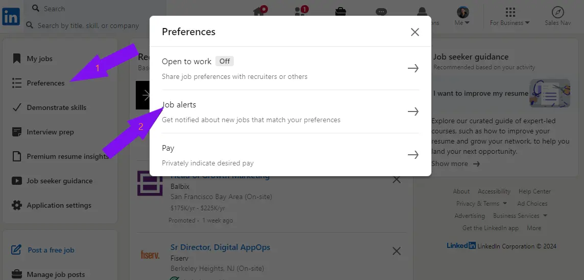 2. Follow the path Jobs > Preferences > Job alerts.
