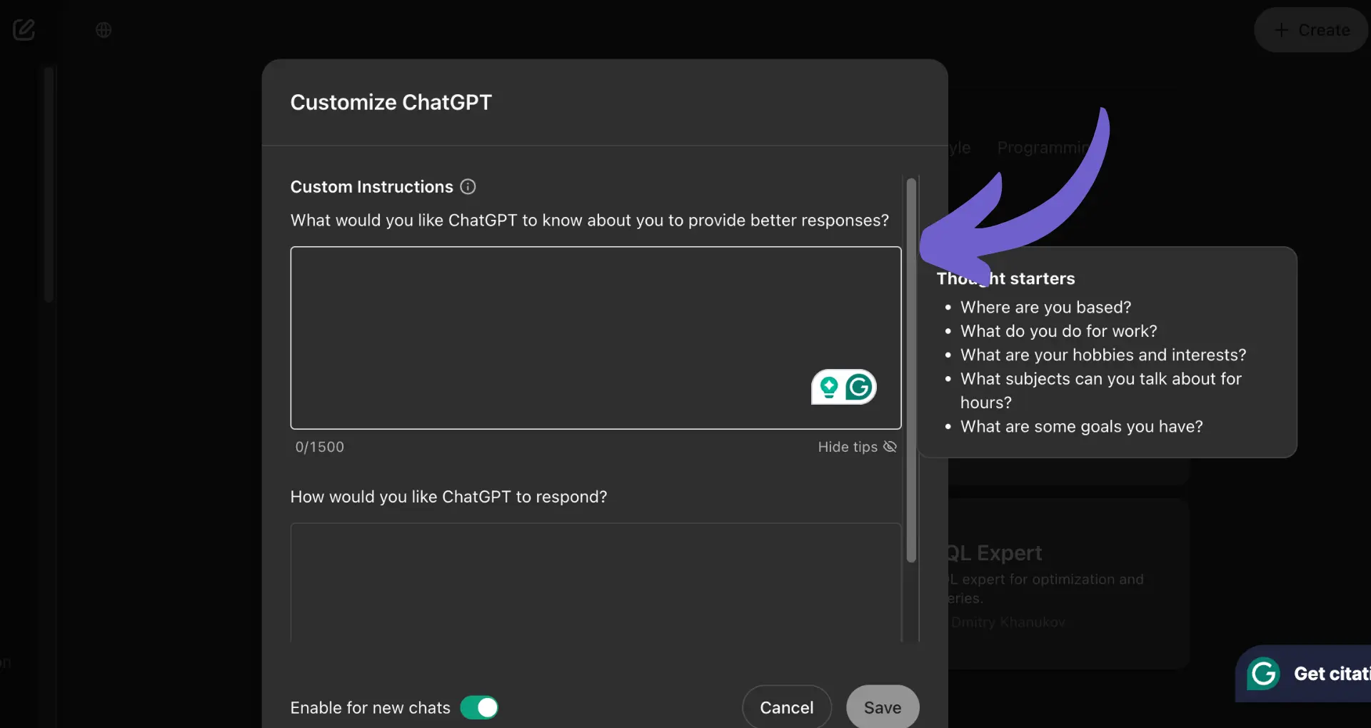 Provide ChatGPT with specific details about your skills, experiences, and career goals.