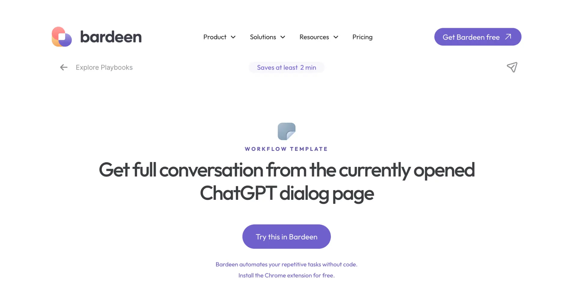 Bardeen helps save ChatGPT transcripts to Google Docs. This playbook can help you keep accurate records and save time. Try now.
