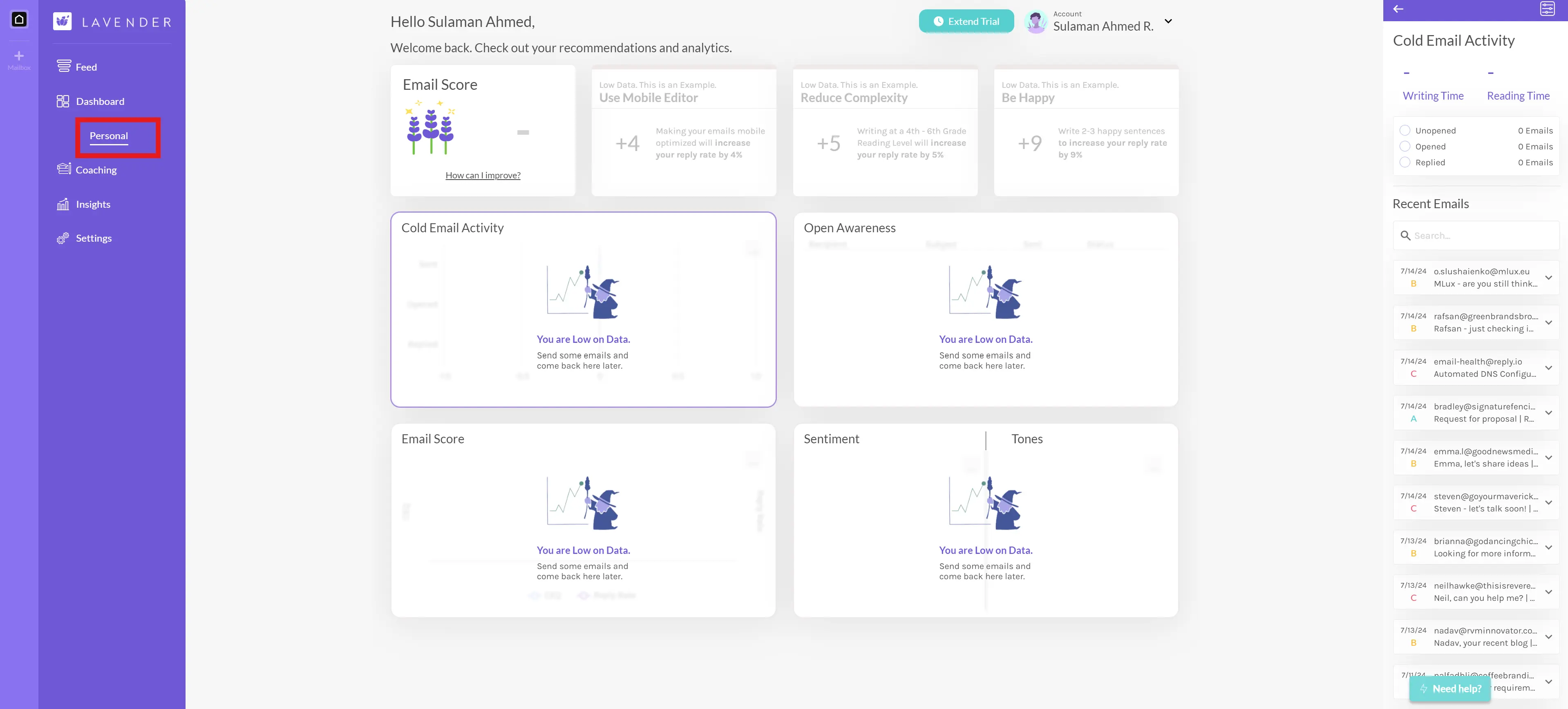 Lavender offers several powerful features to enhance your sales emails: