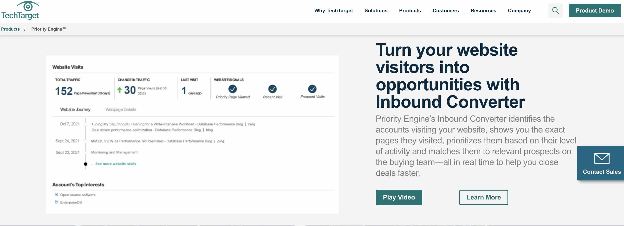 TechTarget's Priority Engine is a powerful intent data platform that helps users engage with prospects actively researching solutions in their technology category. By identifying in-market prospects and providing insights into their buying journey, Priority Engine enables sales and marketing teams to optimize their outreach and improve response rates.
