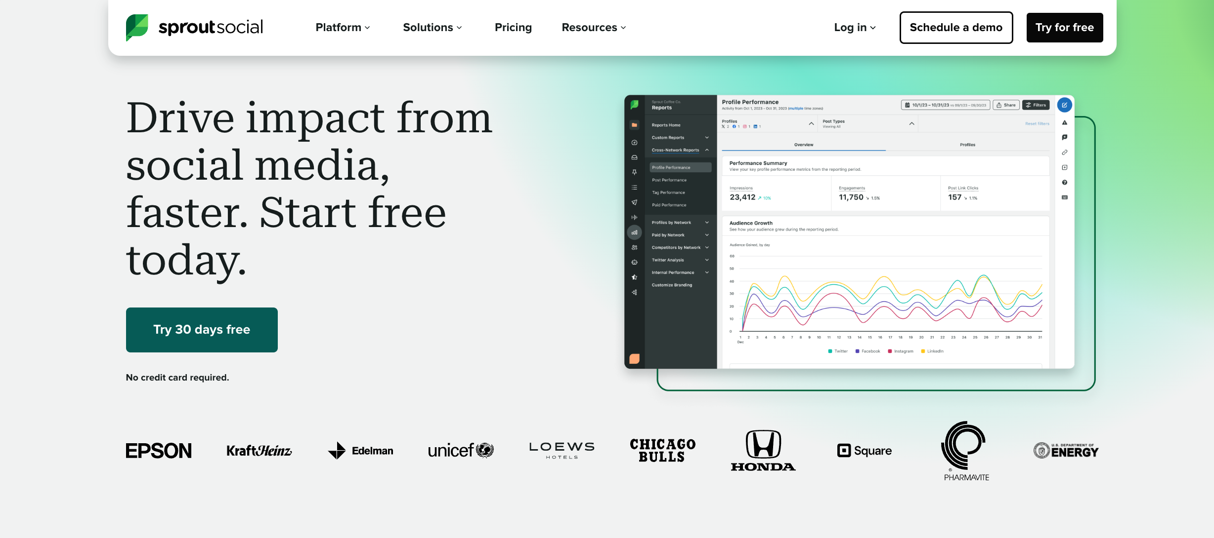 Sprout Social is an intuitive social media management platform that offers advanced analytics features for LinkedIn. Its comprehensive reporting capabilities and AI-powered workflows make it a popular choice among sales teams looking to streamline their communication and measure the impact of their LinkedIn efforts.