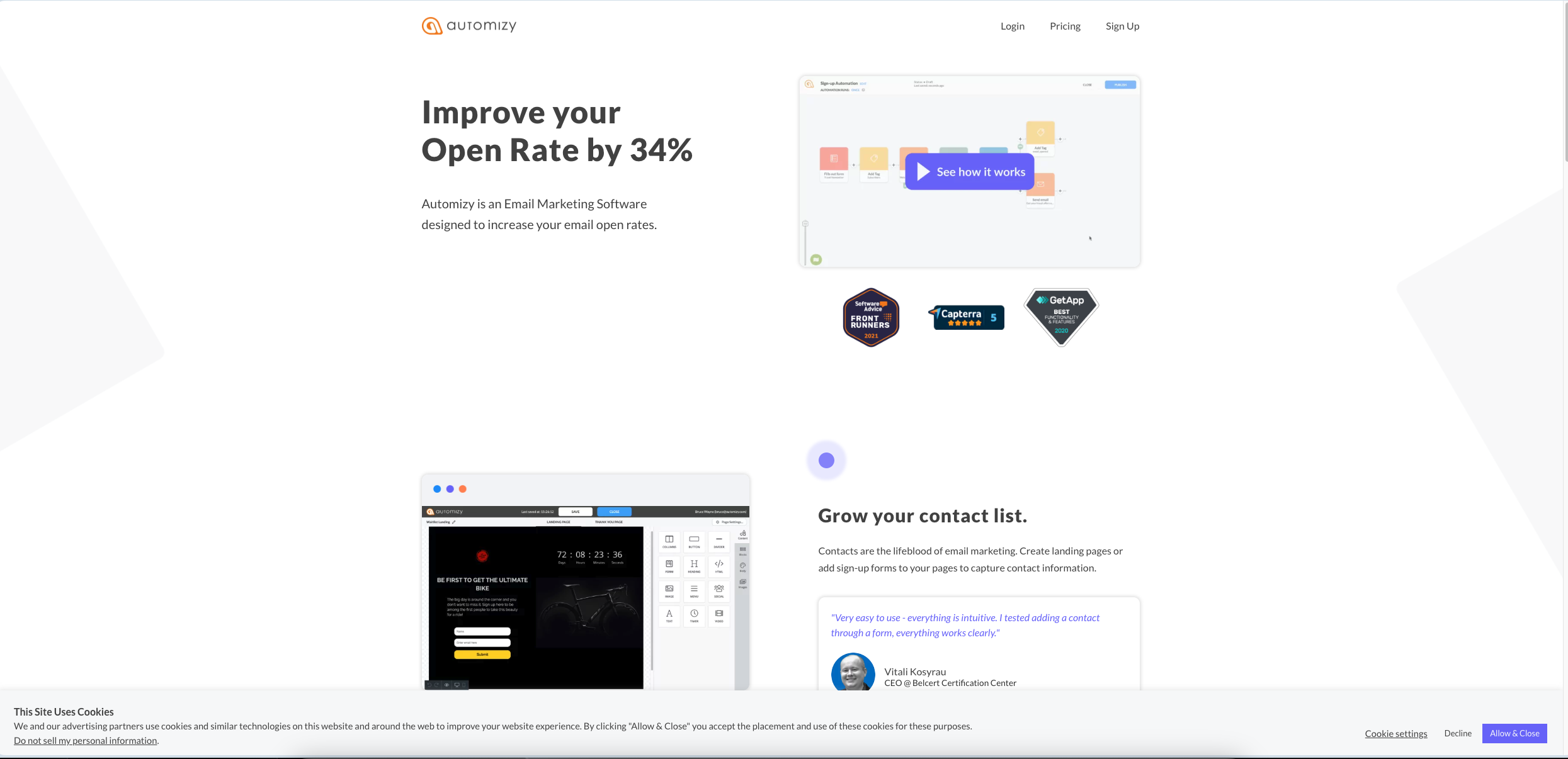 Automizy is an email marketing automation platform designed to streamline and enhance email marketing campaigns. It is included in this list of best sales workflow software because it offers a range of features to initiate, manage, and optimize email marketing efforts, helping businesses increase their email open rates and drive revenue.