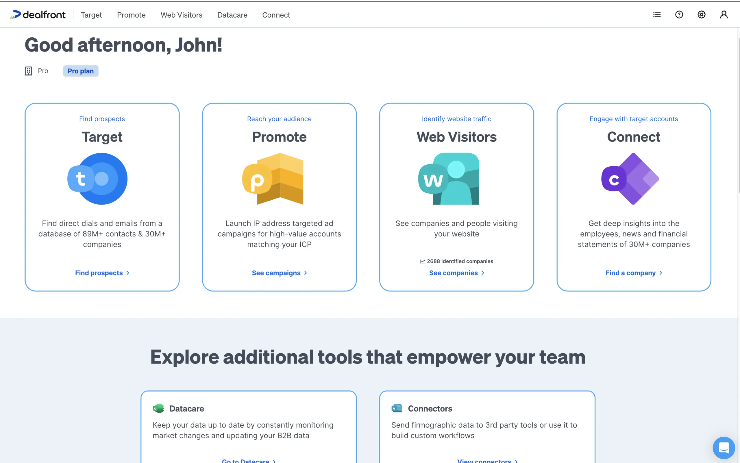 Dealfront is a GDPR-compliant B2B sales prospecting and lead generation tool that helps sales and support teams fill their pipelines with qualified leads. With over 100 unique filters, Dealfront enables users to identify prospects that match their ideal customer profile and provides complete, contextual information to support sales efforts without compromising privacy.