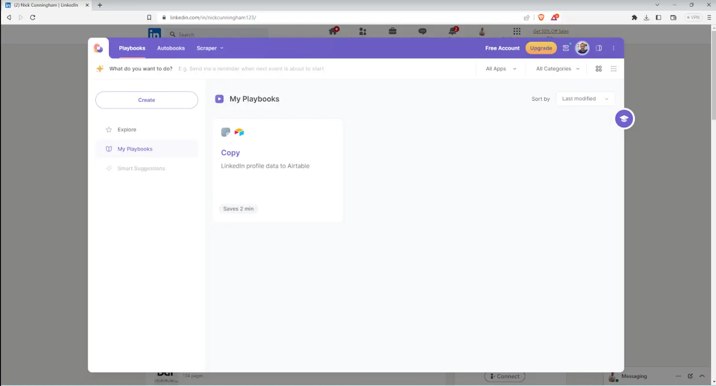 Here's an example of how Alexander's BDR tasks of copying LinkedIn profiles to Airtable were automated with Bardeen: