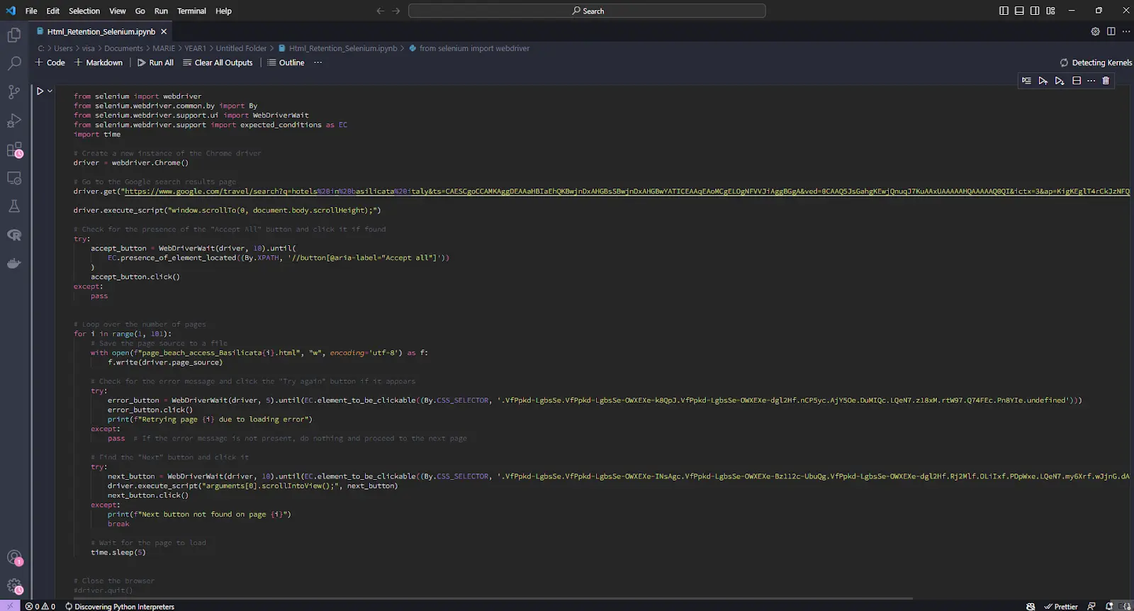 After gathering these links, she had to create another script to run on each individual hotel link to collect the necessary data.
