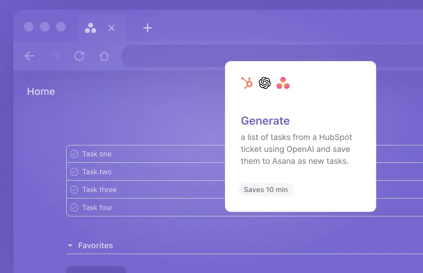 With this automation, you can extract tasks from a HubSpot ticket and save them to Asana as new tasks. If you do this often, this automation can save you time. It’s also available for ClickUp.