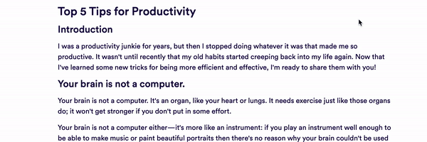 That’s it! You can now go through the text and polish it further. It’s always easier (and more fun) to improve a first draft than it is to start from scratch. You can also take the help of the AI editor to rewrite sections of the piece.