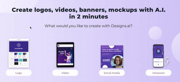 For those who need an all-in-one AI design tool that can take care of many aspects of content creation, Designs.ai is worth a shot. Their mission is to “empower imagination through artificial intelligence.” Whether it’s logos, videos, social media posts, and voiceovers, it can get everything done.