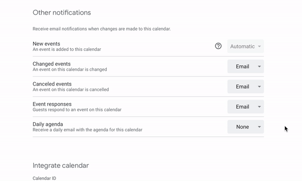 Choose the calendar you want to receive your daily agendas for under My Calendars and click on the ellipses next to it. From the drop-down menu, click on Settings and sharing. Scroll down to Other notifications, and enable Email for Daily agenda.
