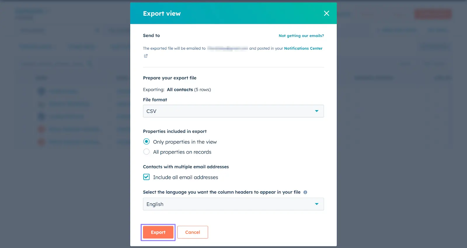 Depending on the size of your contact list, it might take a minute or two for HubSpot to send you the download link to your export file.