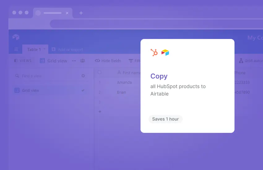 If you want to copy your HubSpot products to Airtable, use this automation. Once you specify the Airtable database and map the information, it’ll copy all products, including name, description, price, and other details.