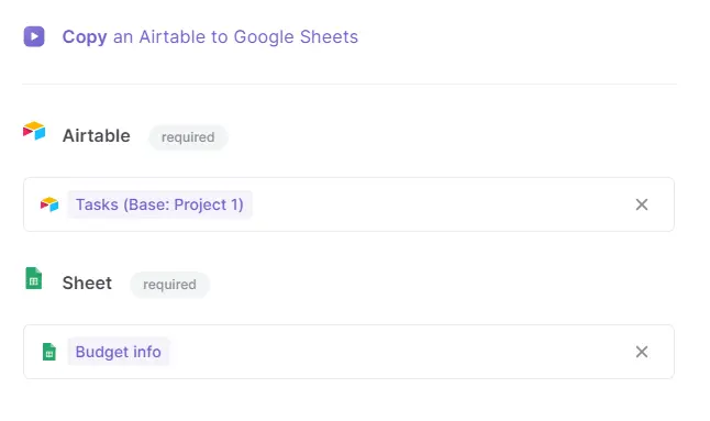 Step 2: Then all you have to do is specify your Airtable, and the destination Google Sheets spreadsheet.