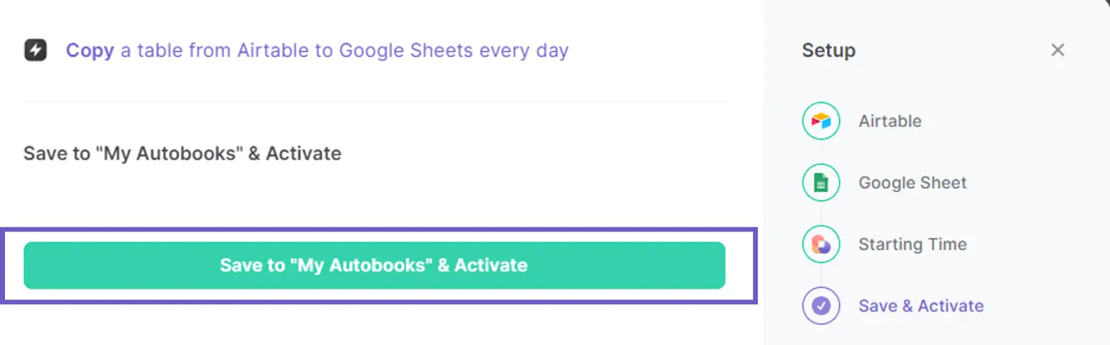 But what if you need the Google Sheet to be updated every day and this option is not the best for your needs? Then you can just use the Copy a table from Airtable to Google Sheets every day autobook to set up the schedule.