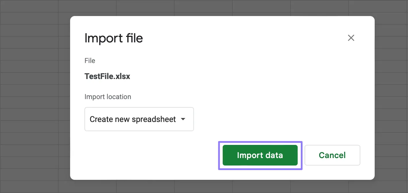 Create new spreadsheet: Convert the Excel spreadsheet into a fresh Google Sheets spreadsheet.