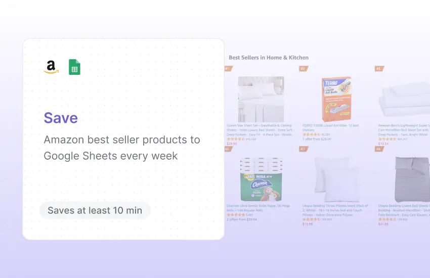 This automation saves a list of products from Amazon’s best sellers page to a Google Sheets spreadsheet every week, providing you with valuable market insights and product tracking. Check this page for more autobooks.