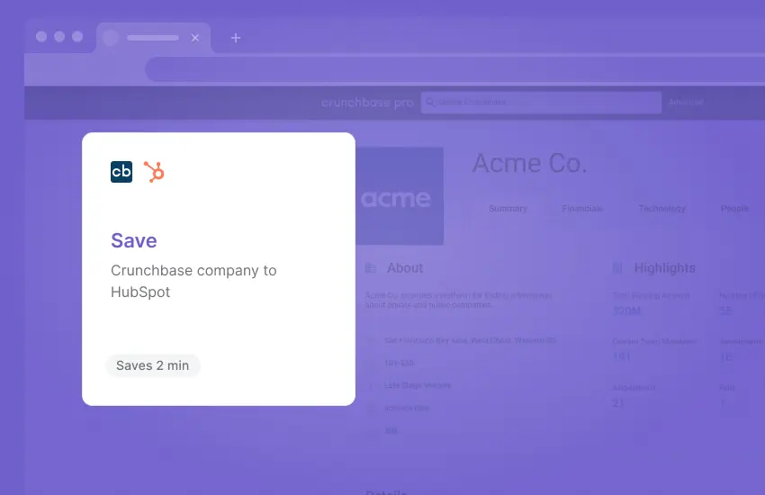 Do you want to save Crunchbase data HubSpot? This automation reduces that task to only a few clicks, and it includes data like name, domain, industry, city, and more.