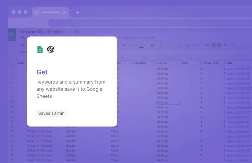 Use this automation for efficient content analysis and organization. Once you open a website and run the automation, it’ll create a summary of the website, identify keywords, and store the results in a spreadsheet for later reference.