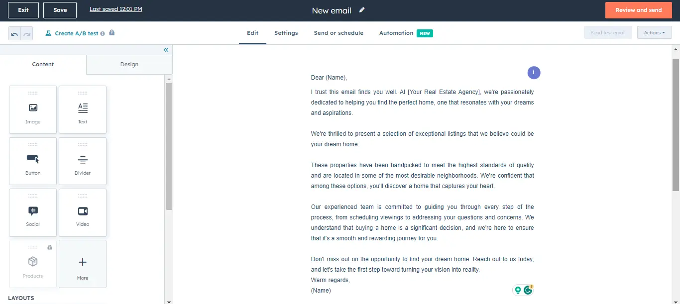 HubSpot CRM empowers your sales team with one-to-one email capabilities, allowing personalized messages based on client behavior and history. These targeted emails, proven more effective than mass mailings, can be accessed from the CRM or your inbox, streamlining your real estate efforts.
