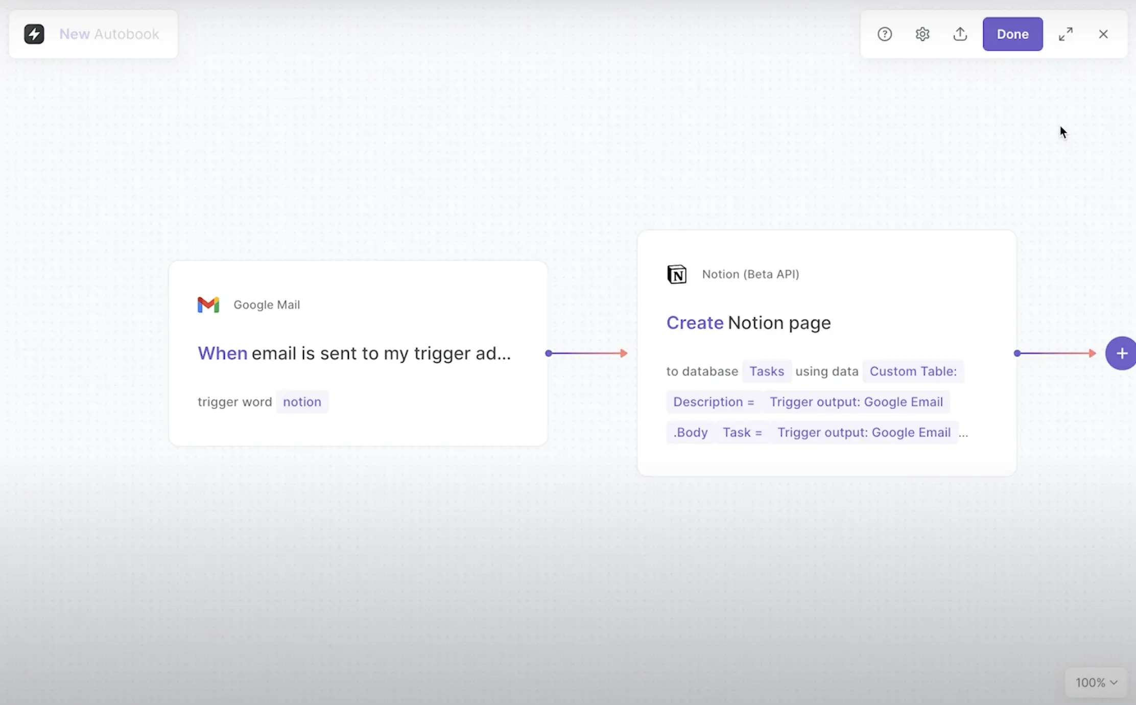 You'll first need to set up a Notion database, then map data from Gmail to Notion by opening the Playbook in the Builder. Once the Notion database is specified, you can just go to a Gmail thread, launch the Playbook, and your contacts will be added without a hitch!