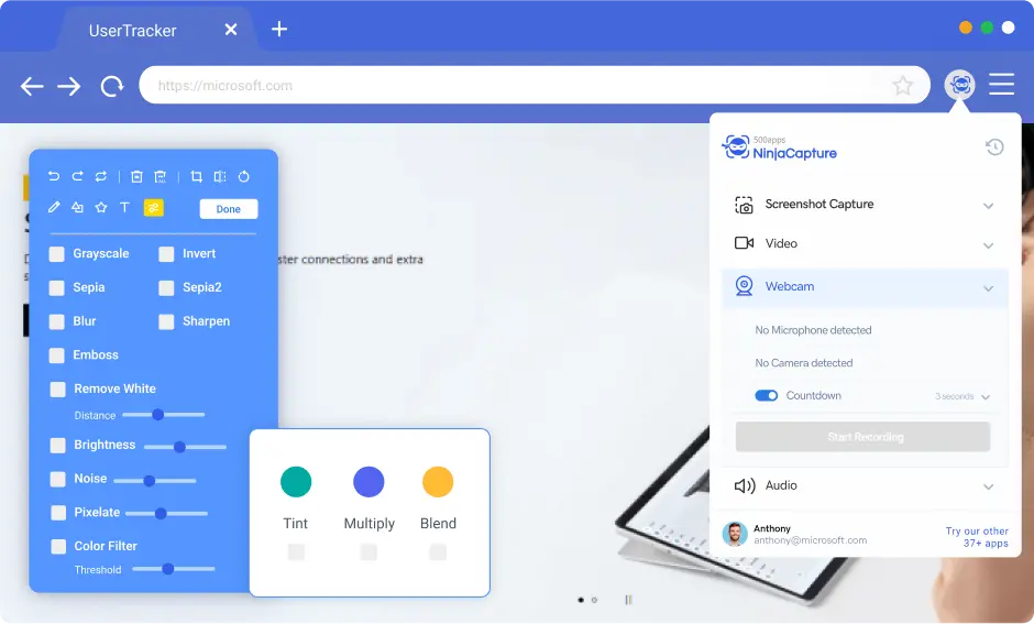 Developed by 500apps, NinjaCapture almost does it all. Once you click on the icon, you’ll see four drop-down menus: Screenshot Capture, Video, Webcam, and Audio. Capture Screenshot lets you take a full-page screenshot, the visible part, or a selected area. You can hover your mouse over the subsequent options to get access to other features.