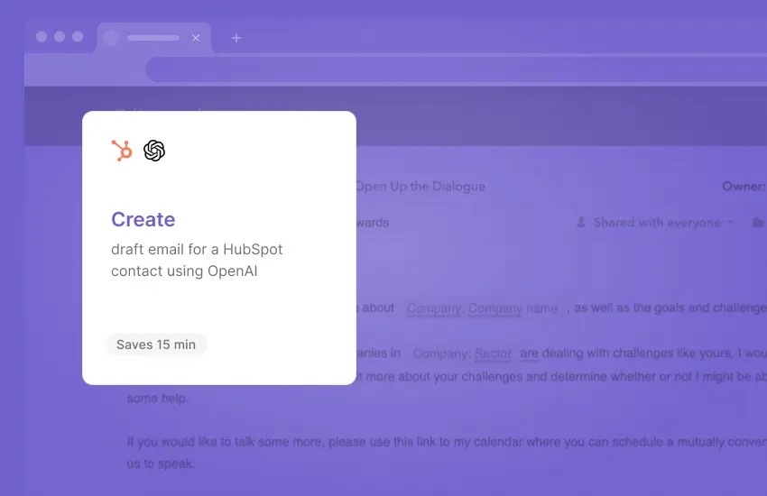 This automation will draft an email for a HubSpot contact based on your prompt. It can come in handy when you want to email a HubSpot contact quickly but don’t have time to type a full email by yourself.