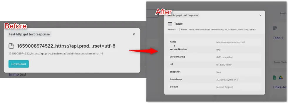 The results visual blocks display the output data in a friendlier format, and you will be able to run quick actions with the output data. For example, if you get data in the table format, the new visual blocks will display the “Import To Sheets” button.