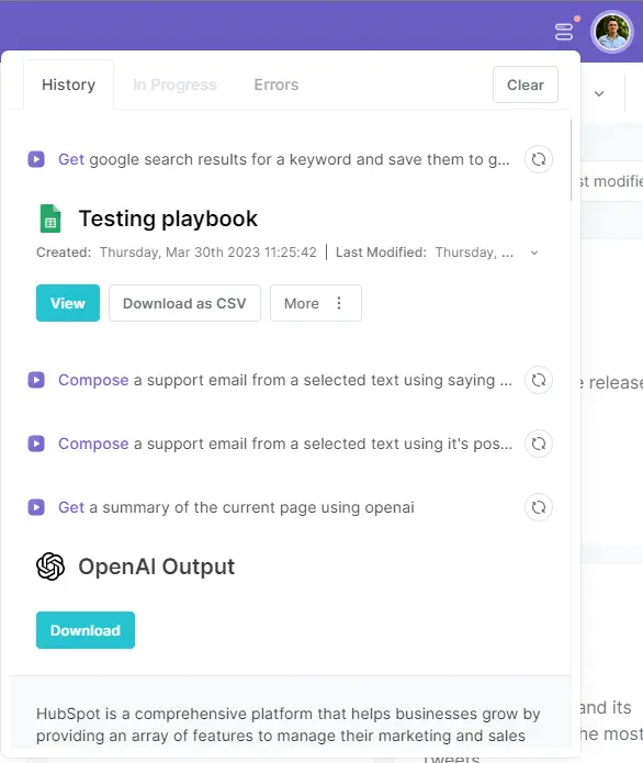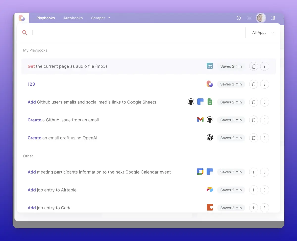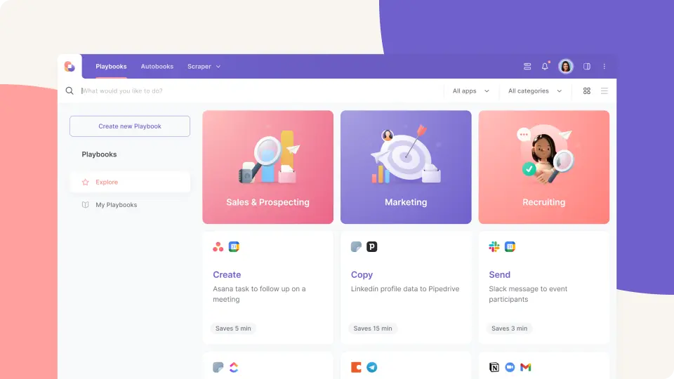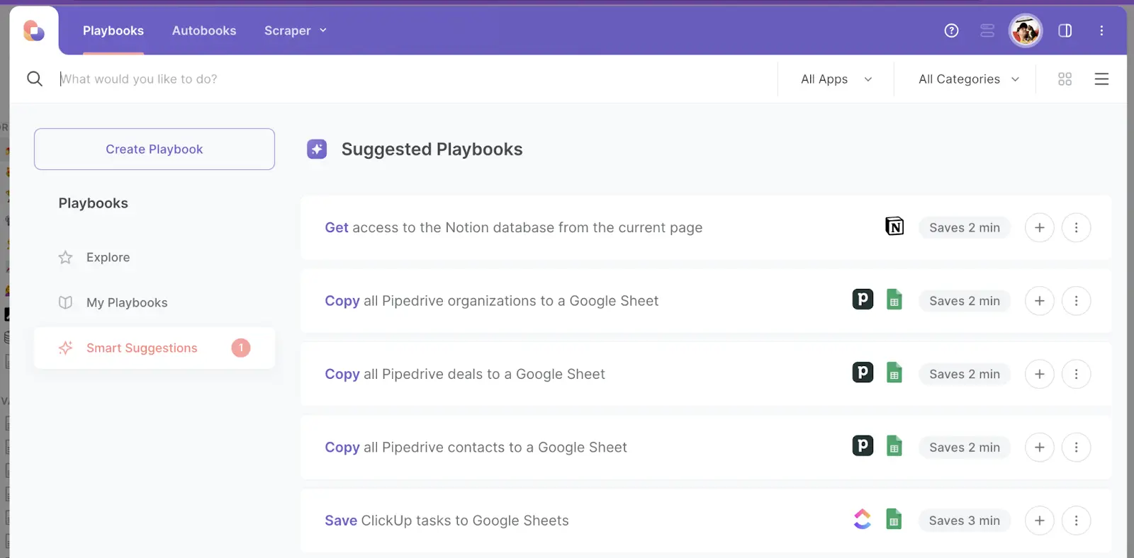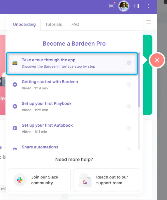 You will be able to discover time-saving playbooks without deliberately searching for them. You can run your workflows regularly, and Bardeen will propose the appropriate playbook for your use case.