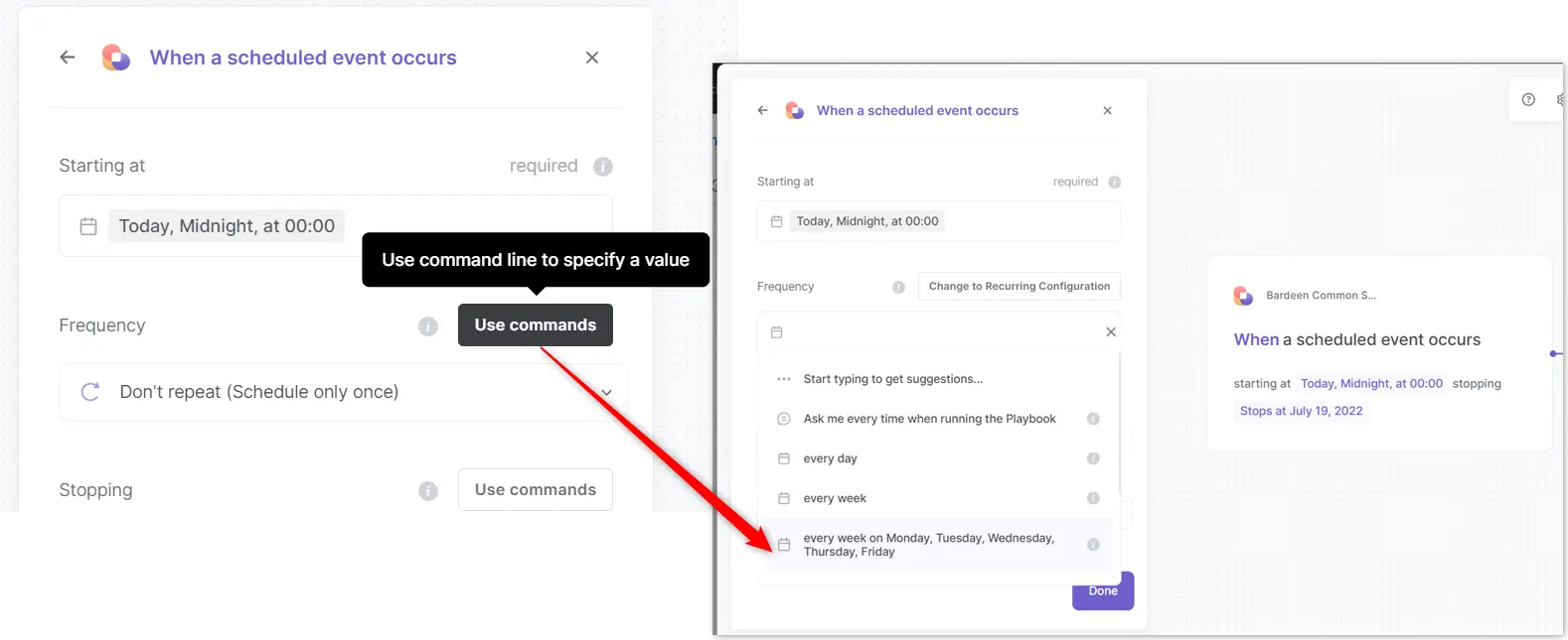 We are developing a visual playbook builder. The playbook builder will allow beginners to create custom playbooks without learning our commands. Additionally, the new builder will support conditional logic (If, then, filter, etc.) to build more complex workflows.
