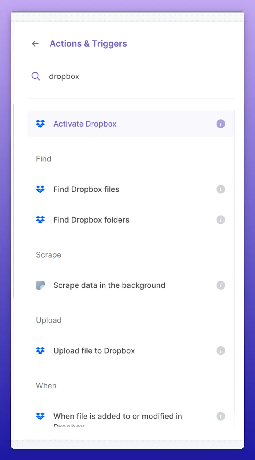 Dropbox 📦. You can now trigger actions in your web apps when a file is added to a Dropbox folder. Or you can simply use Dropbox as a gateway to get your Zoom recordings uploaded to Google Drive automatically.