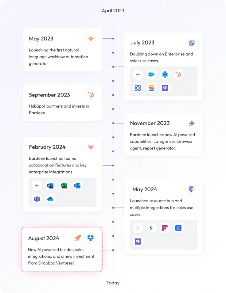At Bardeen, we've been laser-focused on building a platform businesses can rely on to automate their workflows at scale. Here's how we made that happen: