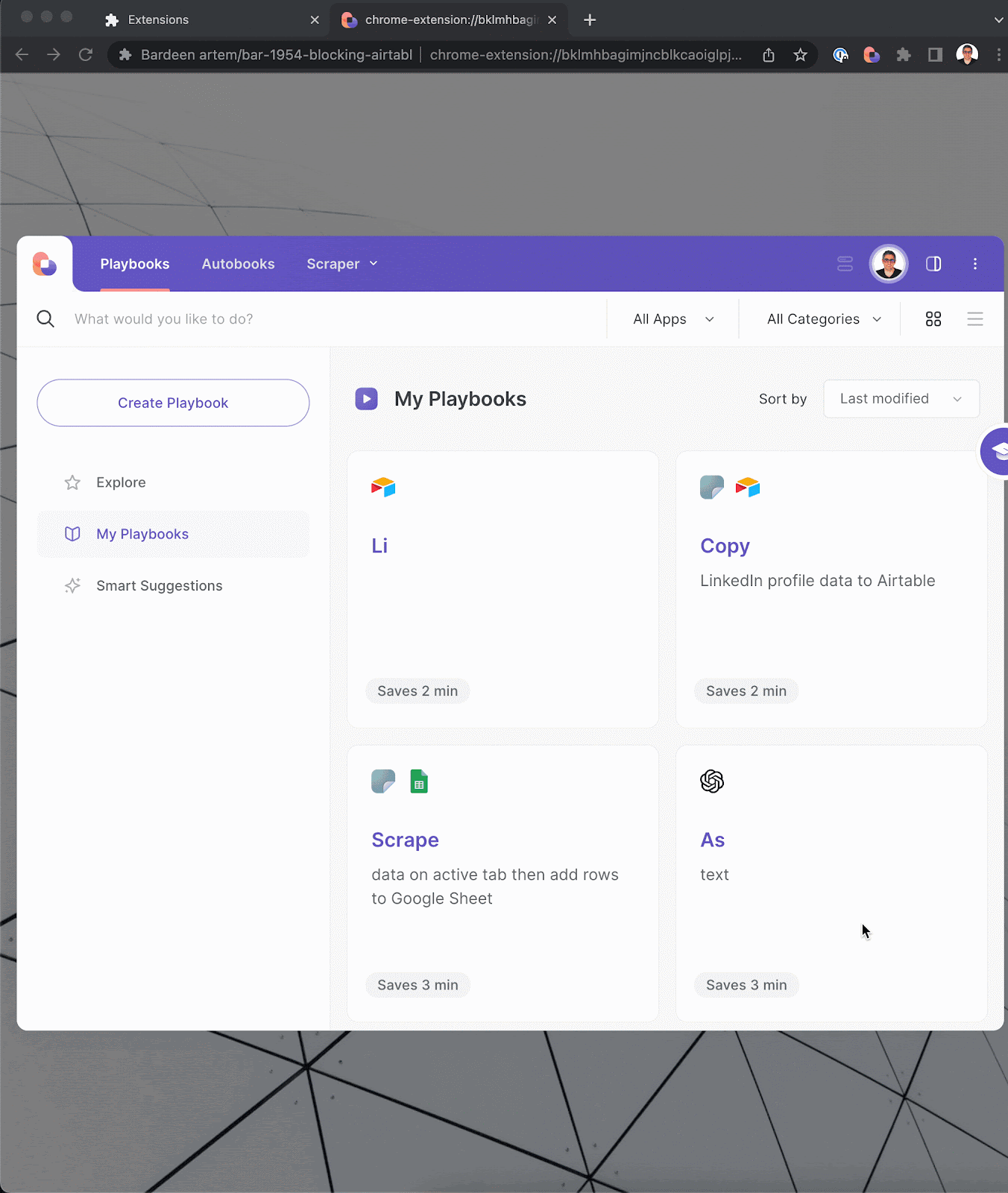 The advantage of being a browser extension is that we can recommend relevant playbooks at the right moment.
