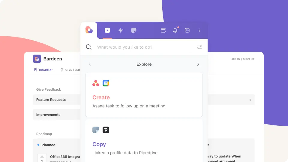 New integrations: Bardeen integrates with a wide range of business tools, including Microsoft 365, most CRMs (Salesforce, Hubspot, Salesloft, Pipedrive and many more), and sales outreach and enrichment tools. Also, don't forget that our AI Agent can interact with any webpage through your browser.