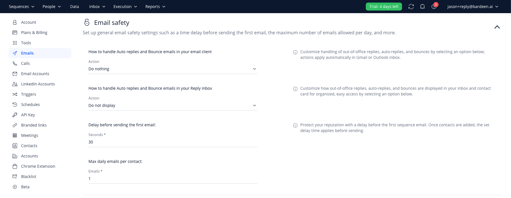 Reply.io, while offering multiple mailboxes and manual blacklist inputs, falls short without a native email warming feature, suggesting a need for additional services to maintain deliverability. For users looking to enhance open and response rates and avoid being flagged as spam, Bardeen can complement these tools by improving sending reputation over time.